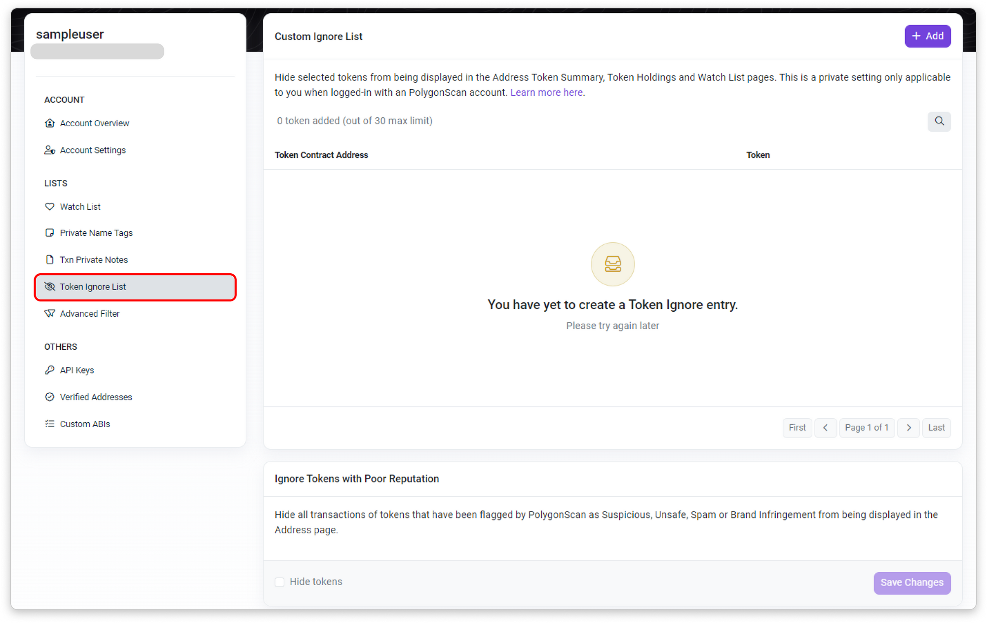 Do take note that the Private Token Ignore List feature does not remove the token transfer events but merely visually hides it from being displayed under your Token Holdings Dropdown list, Token holding details, and Address Watch List token balance. Like the saying goes, "Out of sight, out of mind..."