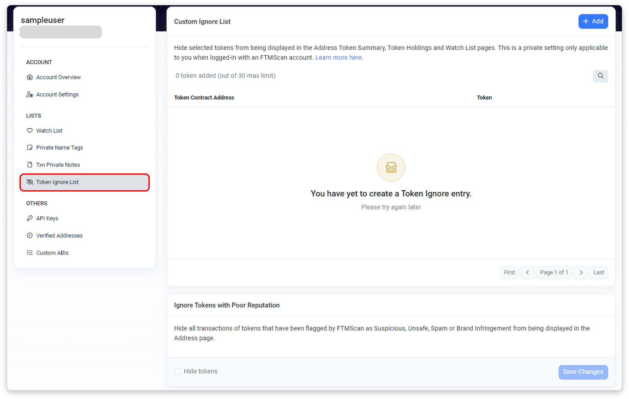 To use this feature, users can log in to their MonadScan account and add the unwanted token to their Private Token Ignore List on the user dashboard. And as long as you are logged into your MonadScan account while browsing the site, the tokens on your ignore list will be hidden from all token holdings of all addresses. The same also applies to all the addresses listed under the user's MonadScan Watch List.