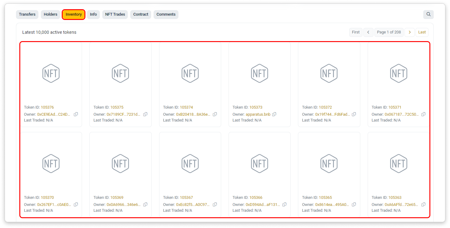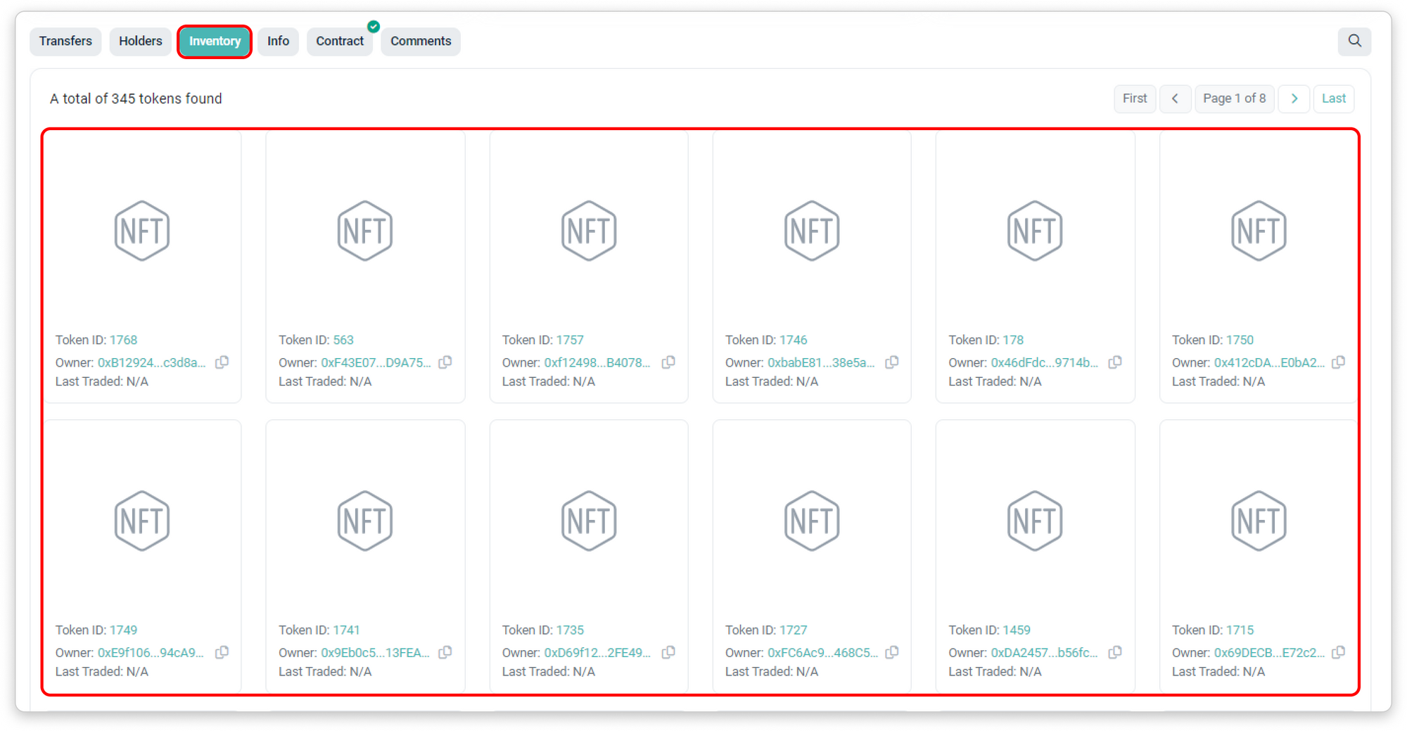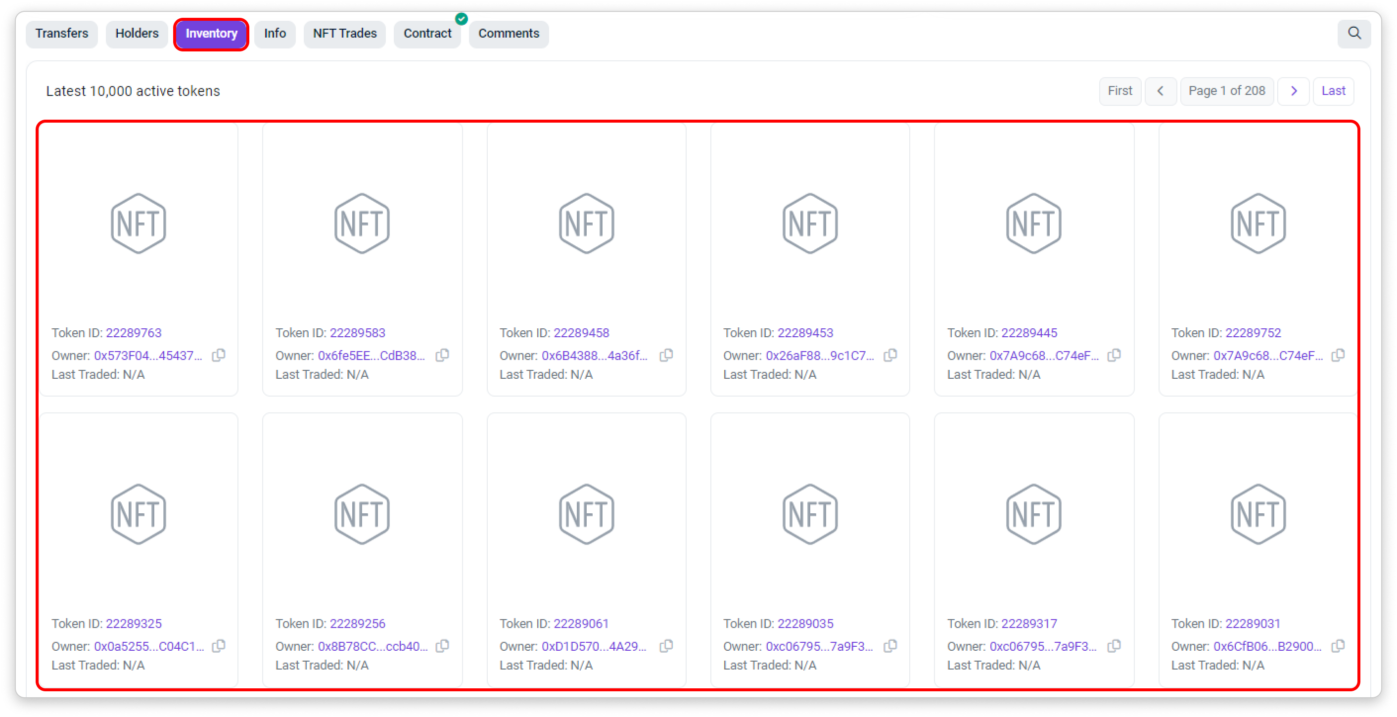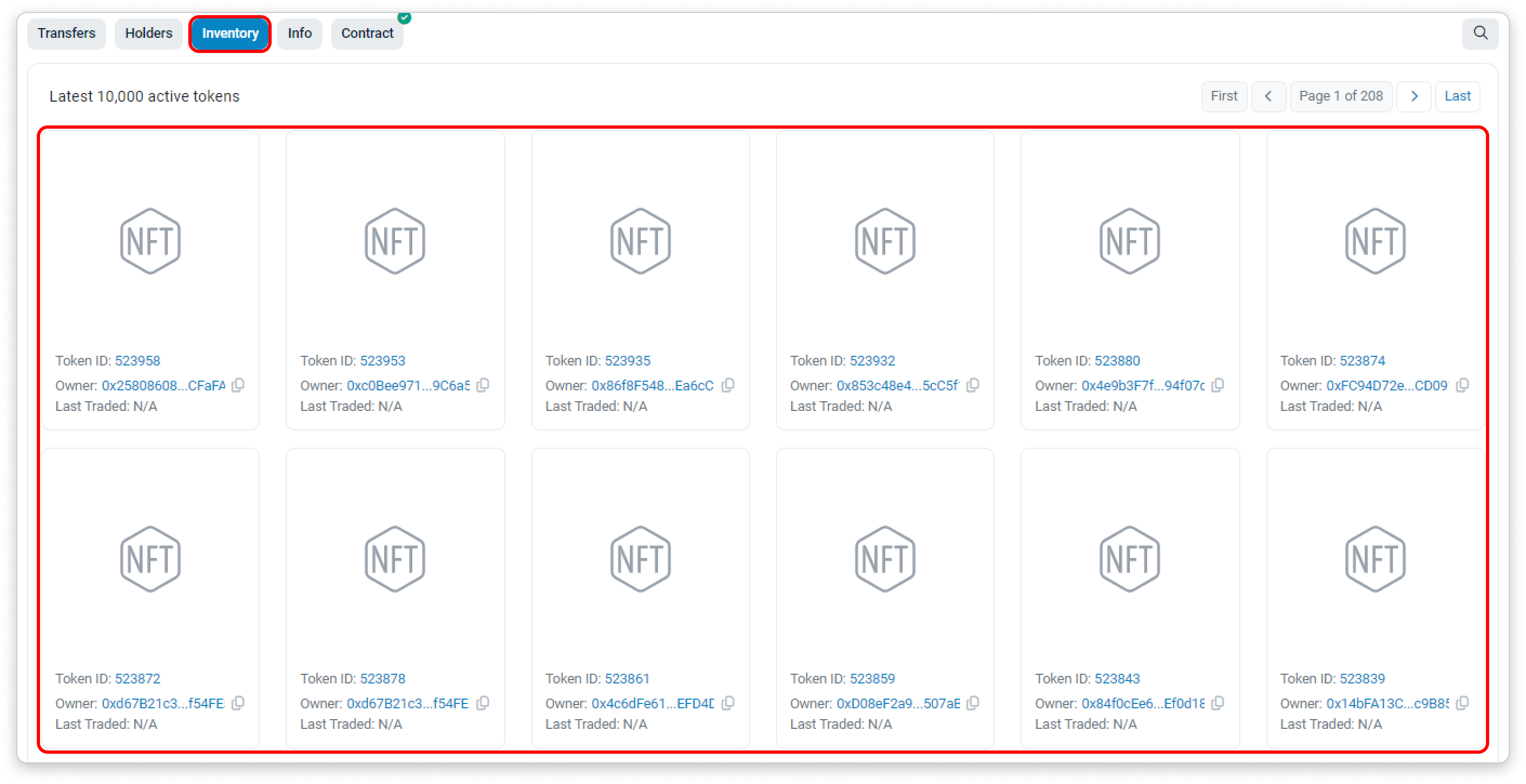 - Token Inventory Tab: Click on any images to bring up a new tab for the NFT.