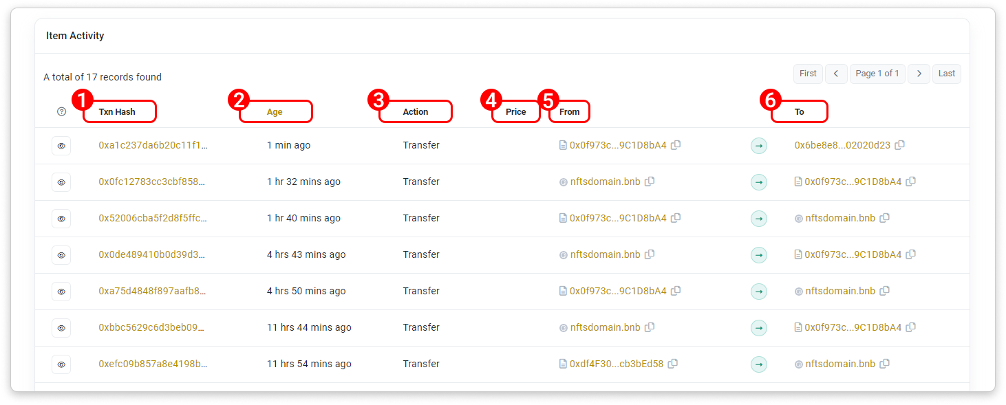 - Age: Shows how long ago the transaction was executed. Click the column header to toggle to the DateTime (UTC) format.