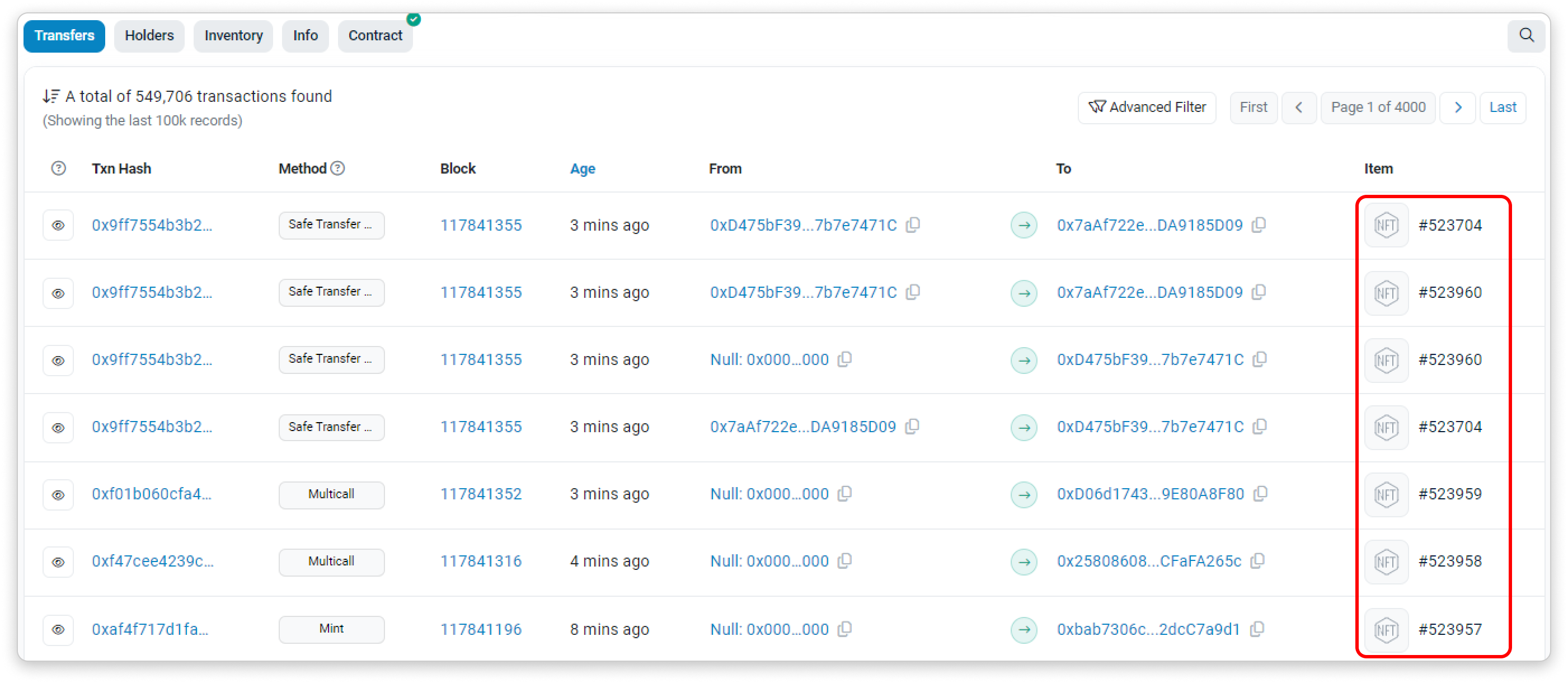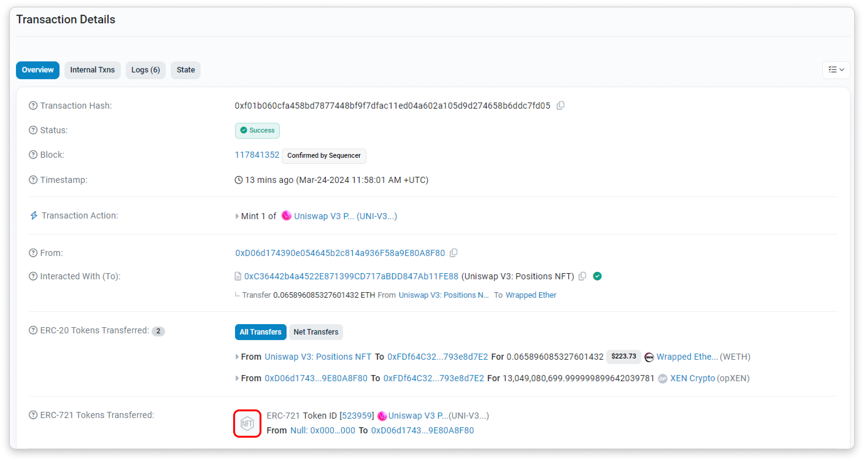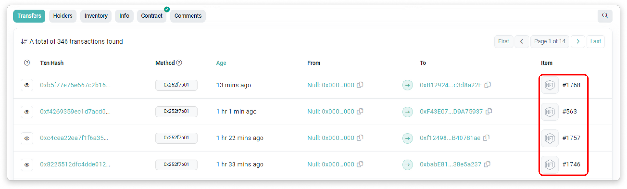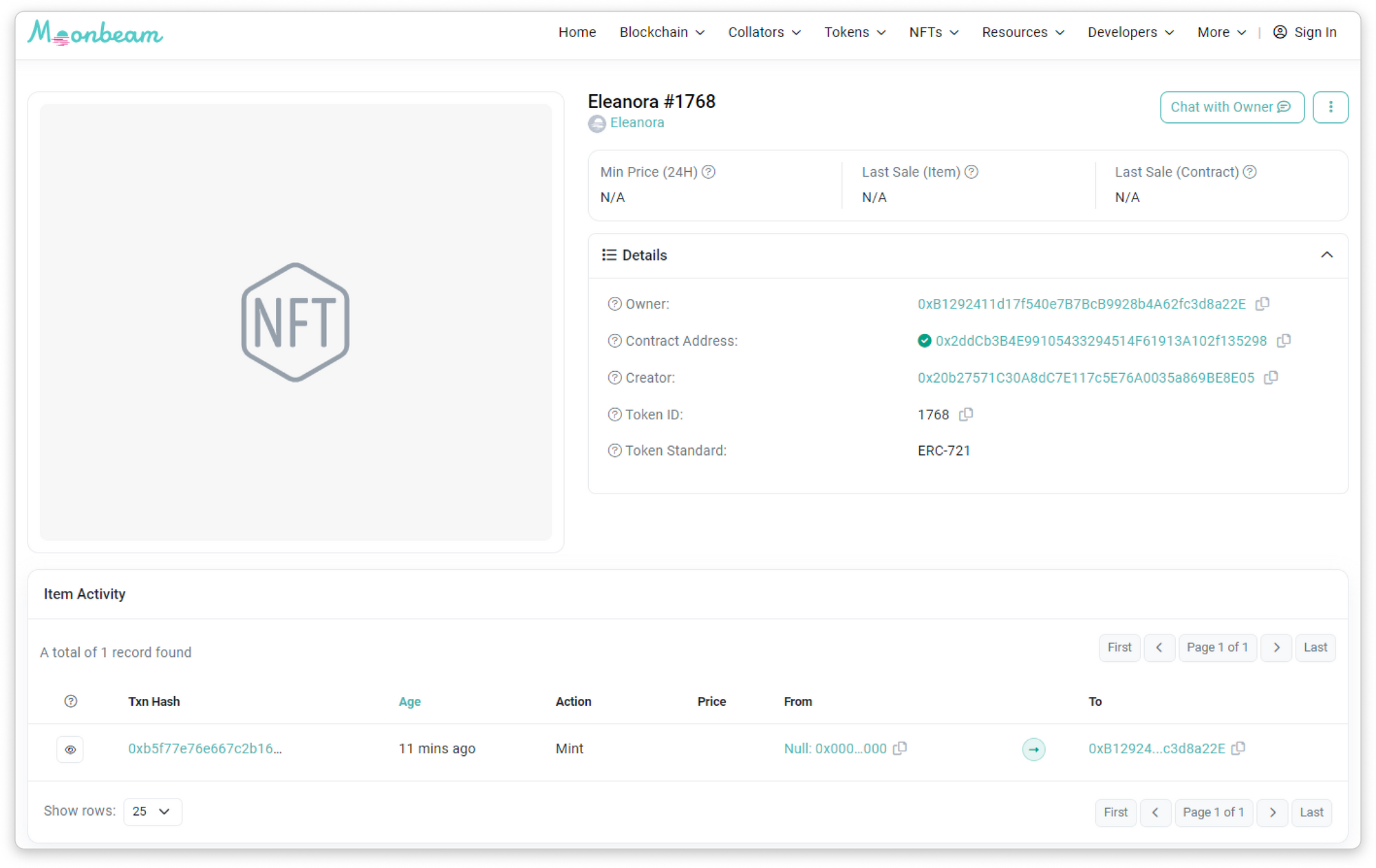 - Transaction Details Page: Click on the NFT image in the ERC-721 Tokens Transferred row.