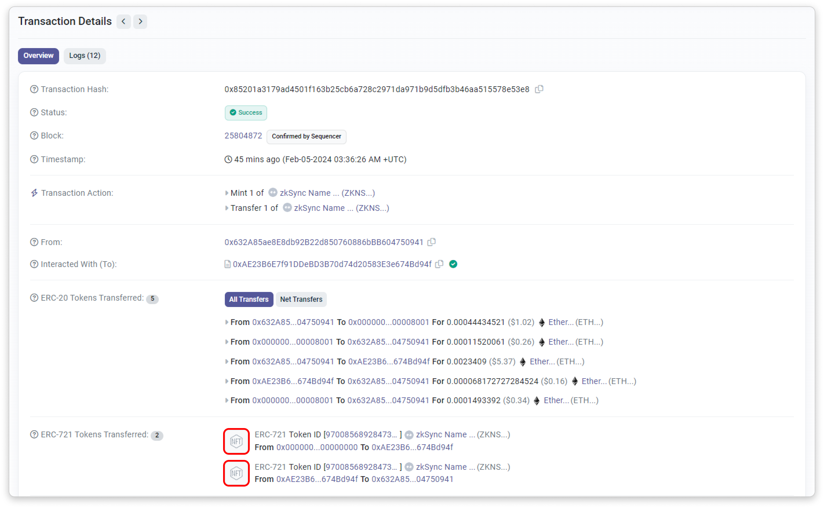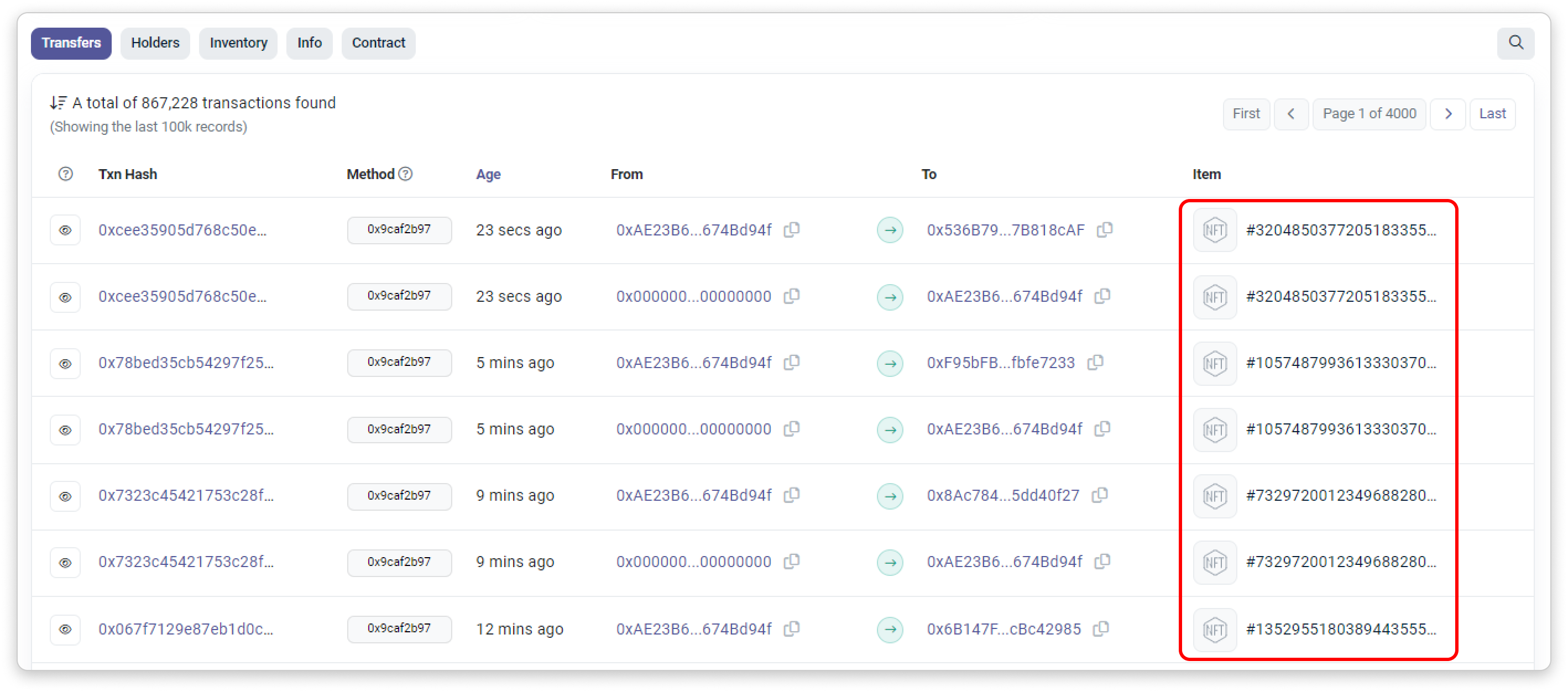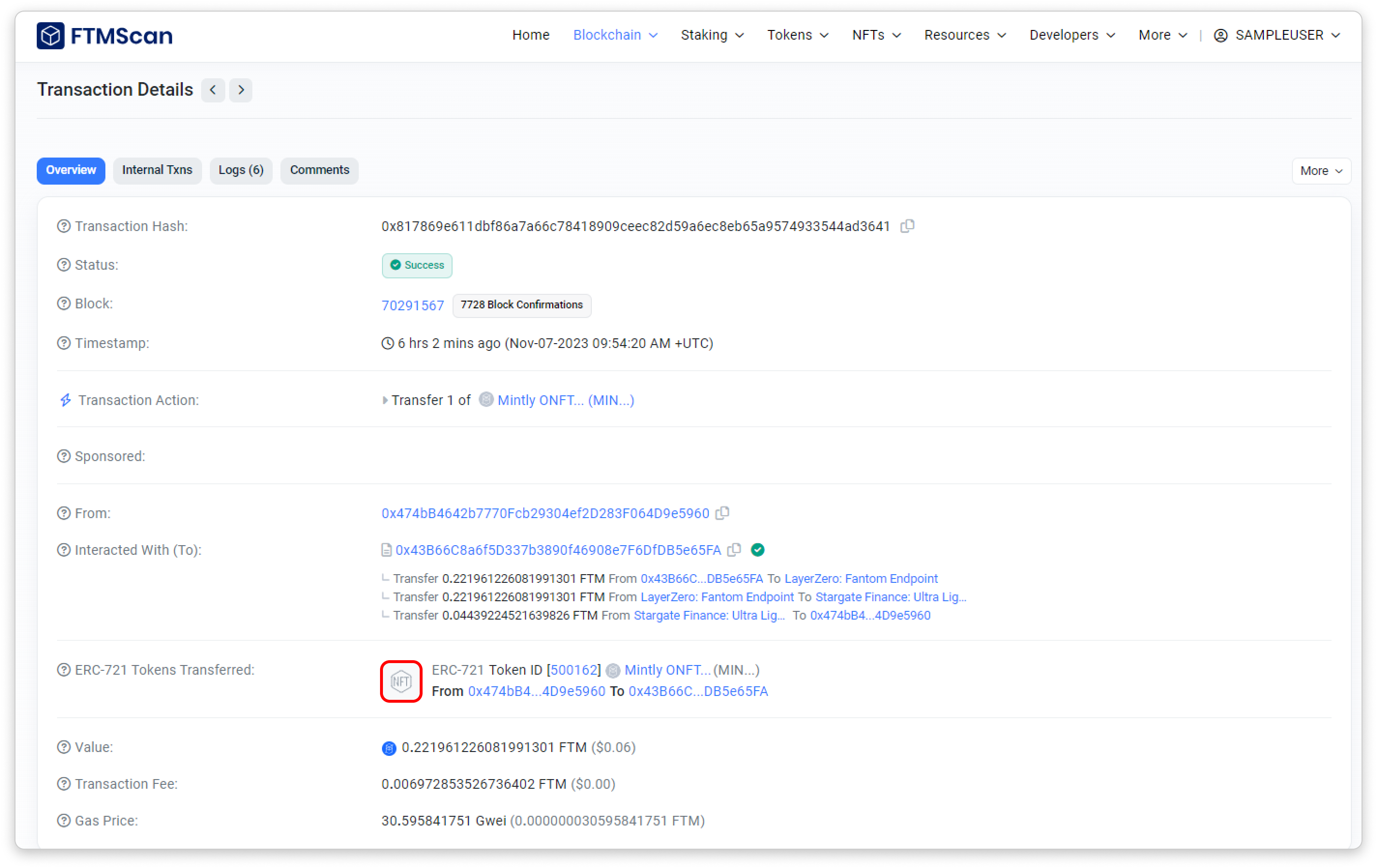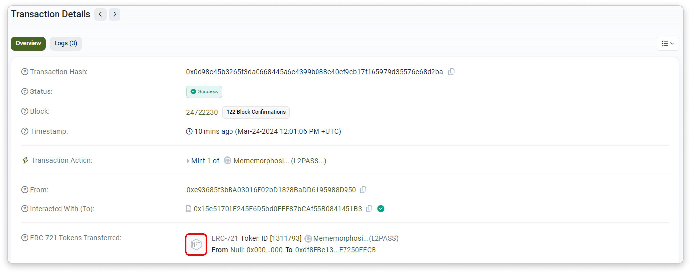 - Transaction Details Page: Click on the NFT image in the ERC-721 Tokens Transferred row.