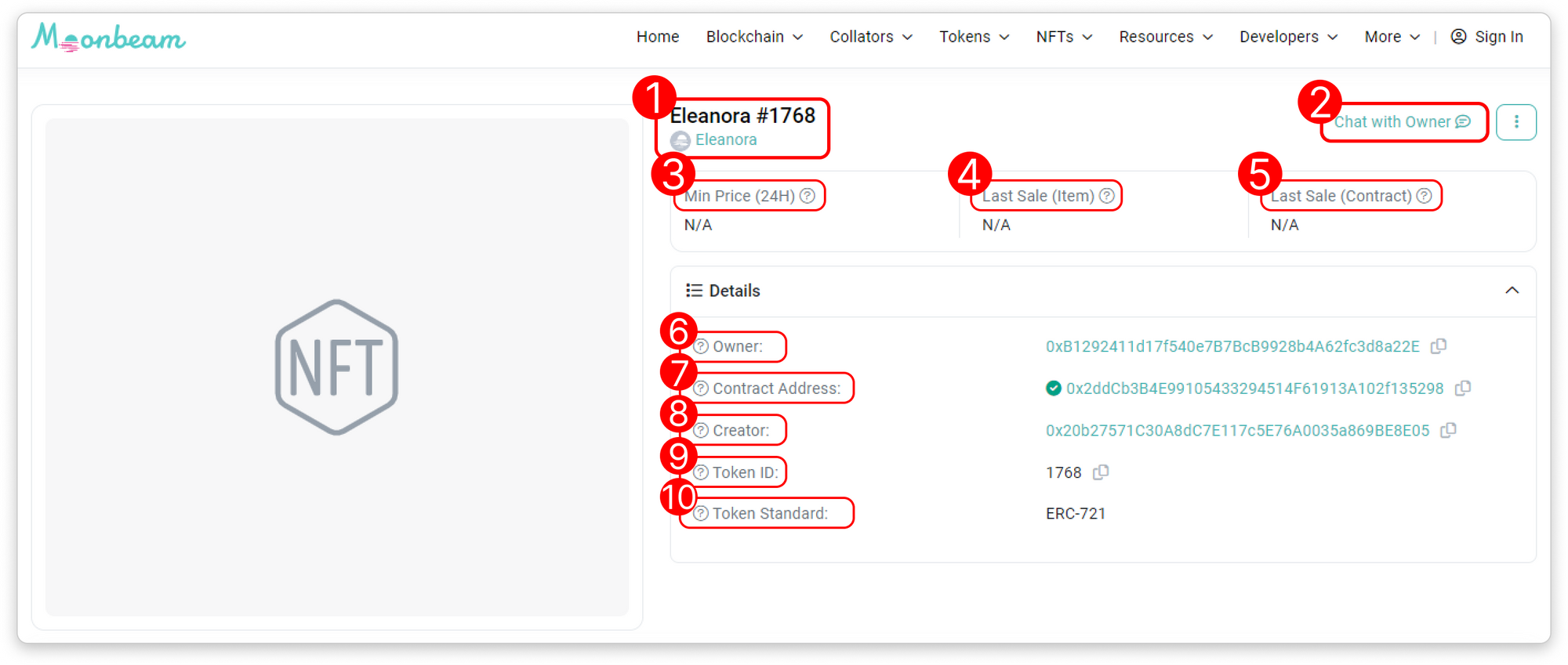- Token Name & Collection: Name of the NFT and the corresponding collection.