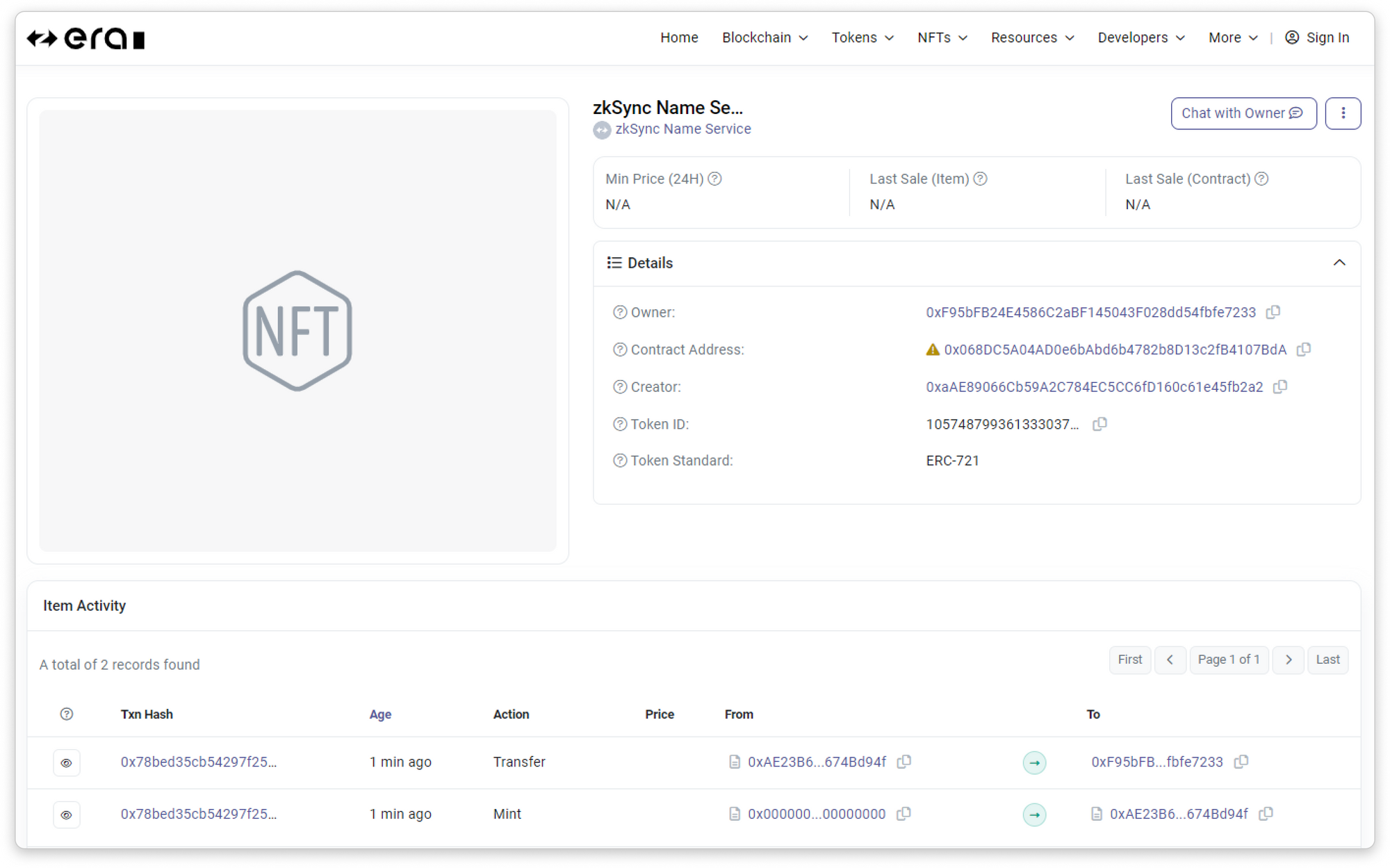 - Chat with Owner: Chat with the NFT owner via Blockscan Chat to negotiate for the best selling price.